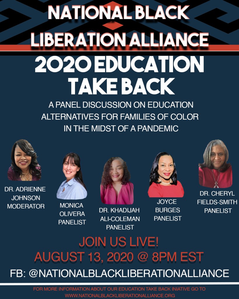 It is time for us to change the narrative and help our communities to liberate themselves from the systemic racism embedded in so many of today’s schools. We will not allow our children to be the “guinea pigs” in this fight against COVID-19.